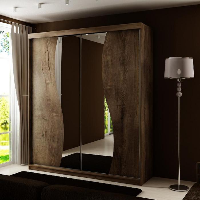 Szafa przesuwna Top z lustrem to praktyczny mebel do sypialni czy przedpokoju, może posłużyć również jako garderoba. Kolor mebla wpasuje się w wiele aranżacji. Będzie pasowała do wnętrz klasycznych jak również do wnętrz nowoczesnych. To duża szafa, która posiada półki oraz drążek do wieszania ubrań, na którym powiesisz nawet długie ubrania. Pojemna szafa to dobre rozwiązanie, żeby schować to czego potrzebujesz. Szafa na ubrania z pewnością sprawdzi się w danym pomieszczeniu.