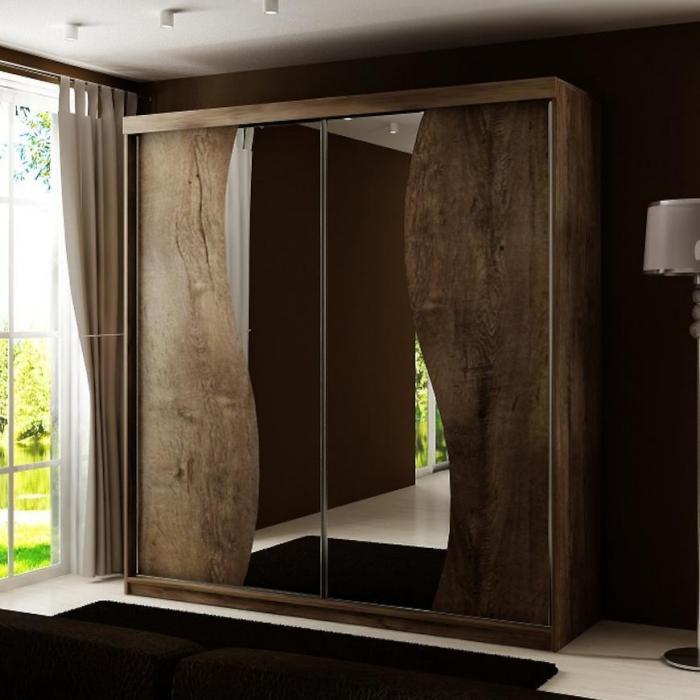 Szafa przesuwna Top z lustrem to praktyczny mebel do sypialni czy przedpokoju, może posłużyć również jako garderoba. Kolor mebla wpasuje się w wiele aranżacji. Będzie pasowała do wnętrz klasycznych jak również do wnętrz nowoczesnych. To duża szafa, która posiada półki oraz drążek do wieszania ubrań, na którym powiesisz nawet długie ubrania. Pojemna szafa to dobre rozwiązanie, żeby schować to czego potrzebujesz. Szafa na ubrania z pewnością sprawdzi się w danym pomieszczeniu.