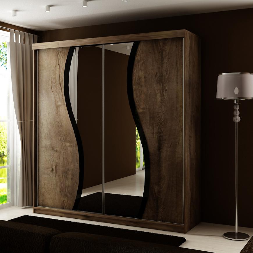 Prosty kształt szafy jest równocześnie gwarancją minimalizmu, co czyni ją uniwersalnym meblem pasującym do różnorodnych aranżacji wnętrz. Drzwi przesuwne nie tylko pozwalają na efektywne korzystanie z przestrzeni, ale również dodają szafie eleganckiego charakteru. Lustro umieszczone na drzwiach sprawia, że szafa pełni nie tylko funkcję praktyczną, ale także optycznie powiększa pomieszczenie, nadając mu lekkości i świeżości.