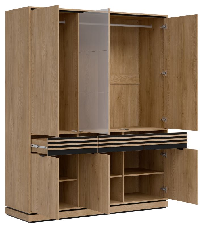W skład kolekcji wchodzą m.in. łóżka, szafka nocna, komody i szafy ubraniowe, zaprojektowane z myślą o codziennym komforcie użytkowania. Szuflady z prowadnicami kulkowymi i pełnym wysuwem gwarantują łatwy dostęp do przechowywanych przedmiotów, a mechanizm push-to-open w górnych drzwiach i szufladach pozwala na intuicyjne otwieranie bez potrzeby stosowania uchwytów – wystarczy lekki nacisk.