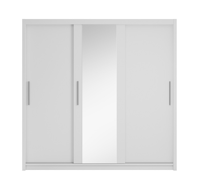 Szukasz nowoczesnej i praktycznej szafy do swojej sypialni, garderoby lub przedpokoju? Szafa przesuwna Vesti 220 z lustrem to doskonałe rozwiązanie, które łączy elegancki design z dużą pojemnością i wygodą użytkowania. Jej ponadczasowy wygląd w białym macie z srebrnymi akcentami sprawia, że doskonale komponuje się zarówno z jasnymi, jak i ciemnymi aranżacjami wnętrz.