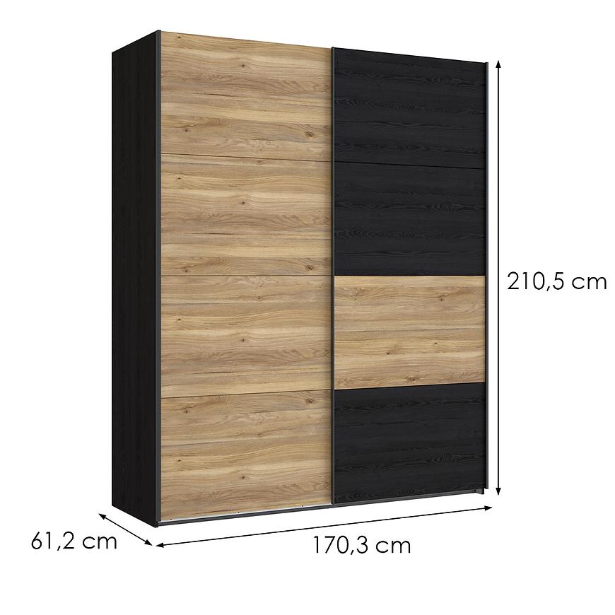 Szafa ubraniowa 170 Liona LYAS82411-M688 w kolorze dąb Mauvella/dąb Cabezone to imponujący mebel o nowoczesnym stylu i funkcjonalnym designie. Jej wymiary wynoszą 210,5 cm wysokości, 170,3 cm szerokości i 61,2 cm głębokości, co zapewnia ogromną ilość miejsca do przechowywania ubrań, akcesoriów i innych przedmiotów.