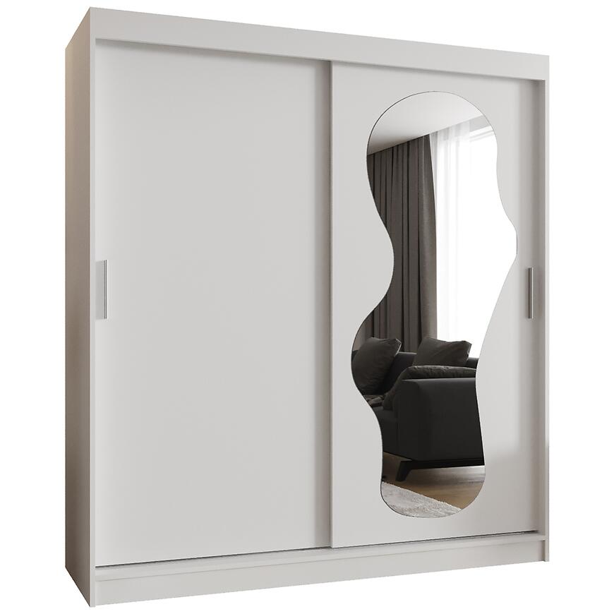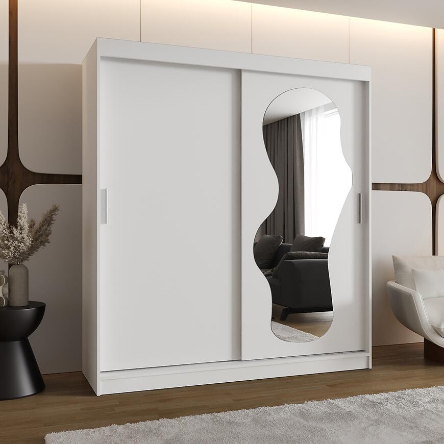 Szafa Ultra 180 w białym wykończeniu to praktyczny i stylowy mebel do nowoczesnej sypialni. Dwudrzwiowa konstrukcja z drzwiami przesuwnymi oraz wbudowanym lustrem pozwala oszczędzić miejsce, a jednocześnie optycznie powiększa przestrzeń i dodaje elegancji wnętrzu. Matowe fronty i korpus w jednolitym białym kolorze nadają szafie minimalistyczny, nowoczesny charakter, który łatwo wkomponować w różnorodne aranżacje wnętrz.