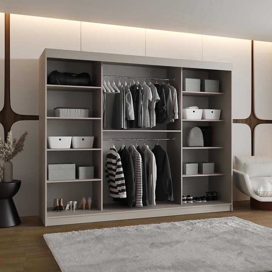 Szafa Ultra 250 kaszmir to idealny wybór dla osób poszukujących dużego, funkcjonalnego mebla, który łączy nowoczesny design z elegancją i praktycznością.