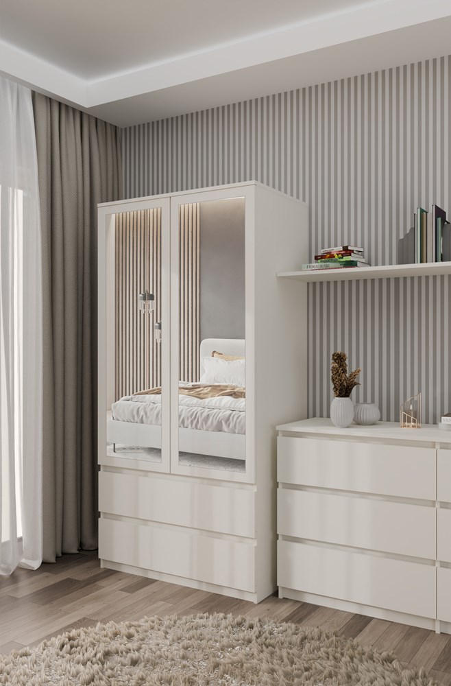 Wygląd szafy Umo z lustrem zachwyci każdego zwolennika uniwersalnego, a zarazem nowoczesnego stylu. Szafa posiada wystarczającą ilość miejsca na ubrania oraz na inne przedmioty. Jest to niezbędny element wyposażenia w każdym domu, garderobie czy przedpokoju.