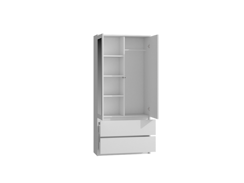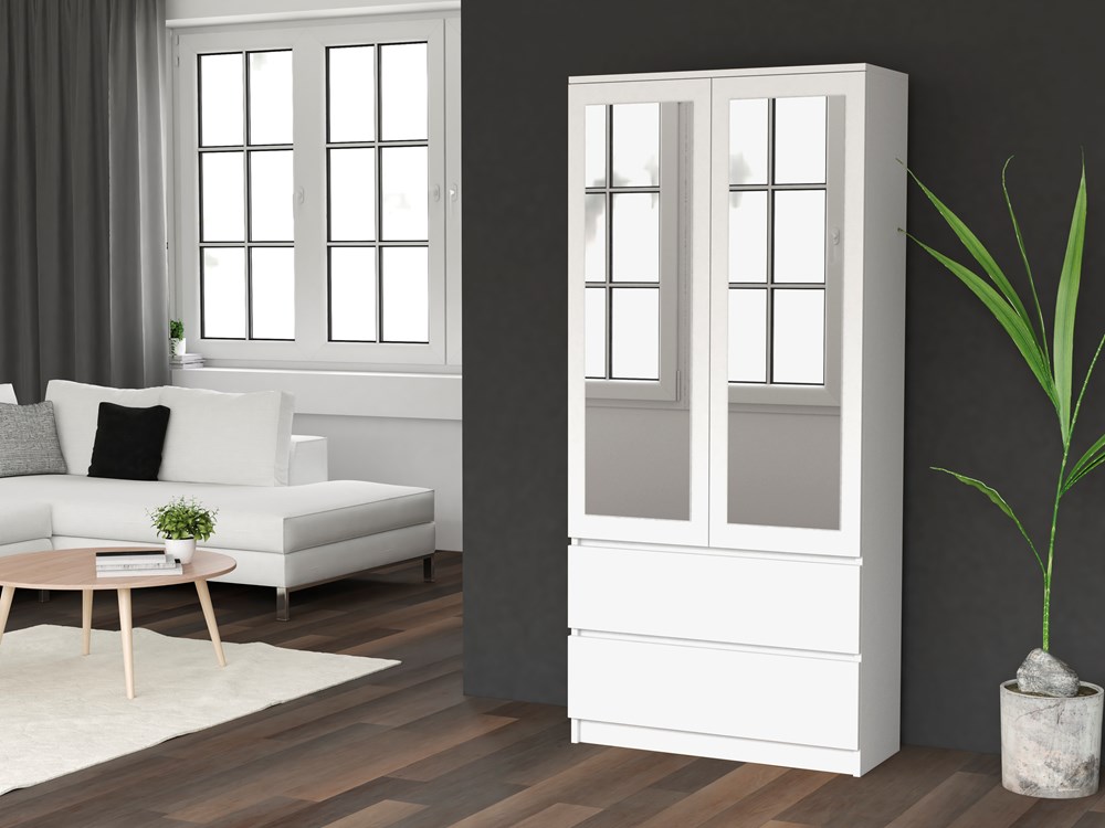 Szafa z drzwiami uchylnymi Umo to doskonały wybór do garderoby, przedpokoju, salonu czy sypialni. Kolor frontów i korpusu sprawiają, że wpasuje się w większość aranżacji. Jej wnętrze jest pojemne i pomieści zarówno ubrania jak i inne akcesoria. Szafa jest 2-drzwiowa i posiada 2 szuflady. Dodatkowym atutem jest lustro, które optycznie powiększy pomieszczenie.