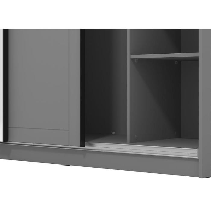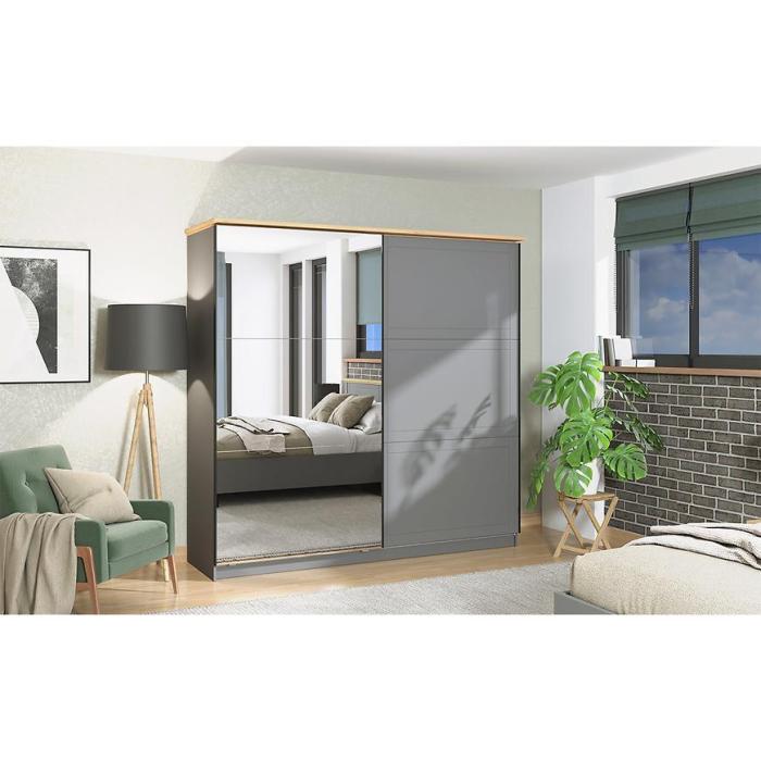 Szafa VALENCIA to doskonała propozycja do sypialni, a także do przedpokoju. Może stanowić doskonałe uzupełnienie garderoby. Korpus i fronty szafy wykonane są w kolorze grafitowym. Korpus w matowym wykończeniu. Wygląd szafy jest minimalistyczny, nowoczesny i będzie pasować do większości aranżacji.