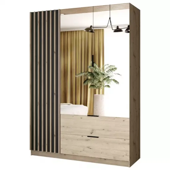 Szafa Vegas 150 w wybarwieniu dąb artisan/grafit to elegancka i funkcjonalna propozycja dla nowoczesnych wnętrz, która łączy estetykę z praktycznością. Jej prosta forma i staranne wykończenie sprawiają, że doskonale wpisuje się w aktualne trendy wnętrzarskie, nadając pomieszczeniu stylowego charakteru.