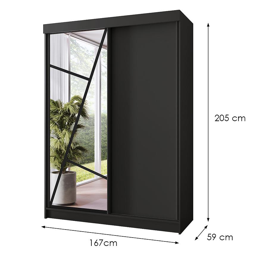 Szafa Vena 167 w kolorze czarnym to doskonały wybór dla osób poszukujących nowoczesnego i funkcjonalnego mebla do swojego wnętrza. Ze swoimi wymiarami: 167 cm szerokości, 205 cm wysokości i 59 cm głębokości, zapewnia dużą pojemność do przechowywania odzieży, obuwia i innych przedmiotów, idealnie sprawdzając się w sypialniach, przedpokojach czy garderobach.
