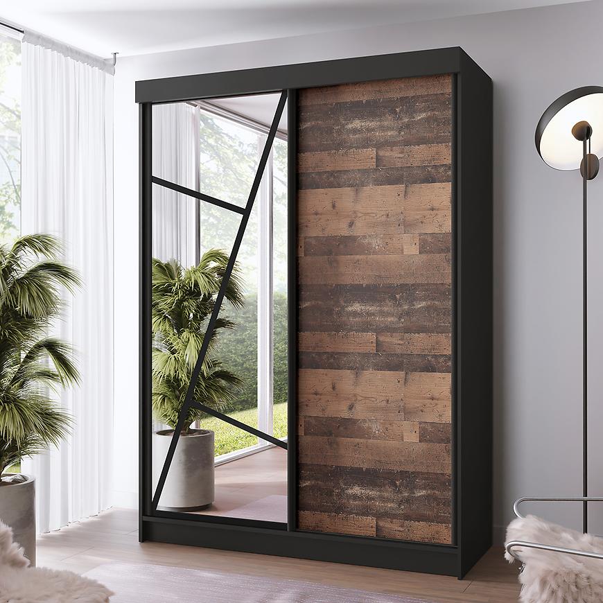 Szafa wyposażona jest w dwudrzwiowe drzwi przesuwne, co nie tylko oszczędza miejsce w pomieszczeniu, ale także zapewnia łatwy dostęp do jej wnętrza. Przesuwne drzwi pozwalają na wygodne użytkowanie mebla nawet w niewielkich przestrzeniach, co jest dużym atutem w małych mieszkaniach czy pokojach.