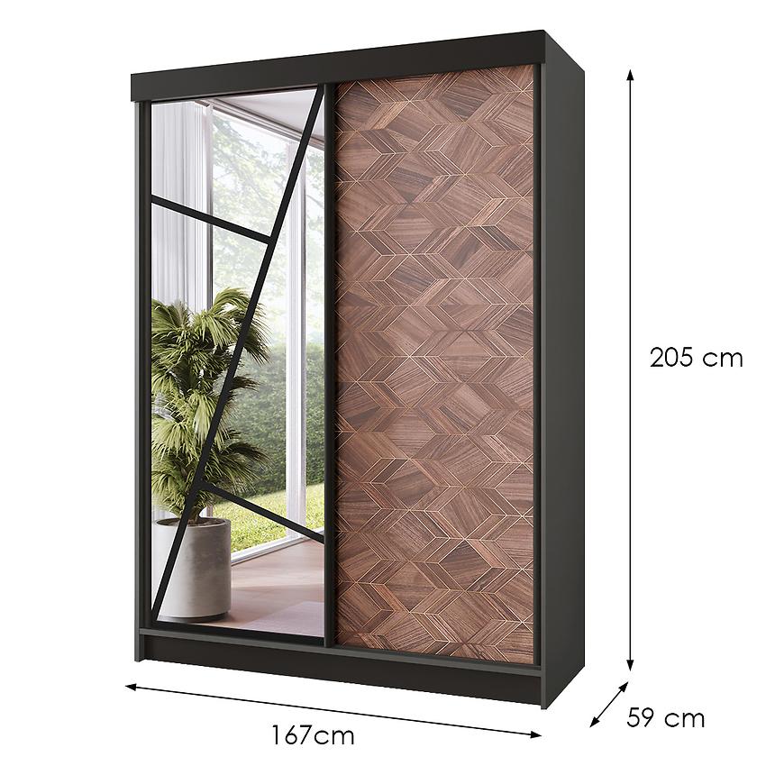 Szafa Vena 167 grafit antracyt/ art deco to nowoczesny i stylowy mebel, który idealnie wpasuje się w każde wnętrze, dodając mu elegancji i funkcjonalności. Szafa o wymiarach 167 cm szerokości, 205 cm wysokości i 59 cm głębokości jest zaprojektowana w prostym kształcie, co umożliwia jej umieszczenie w różnych przestrzeniach, zarówno w sypialni, jak i w garderobie.