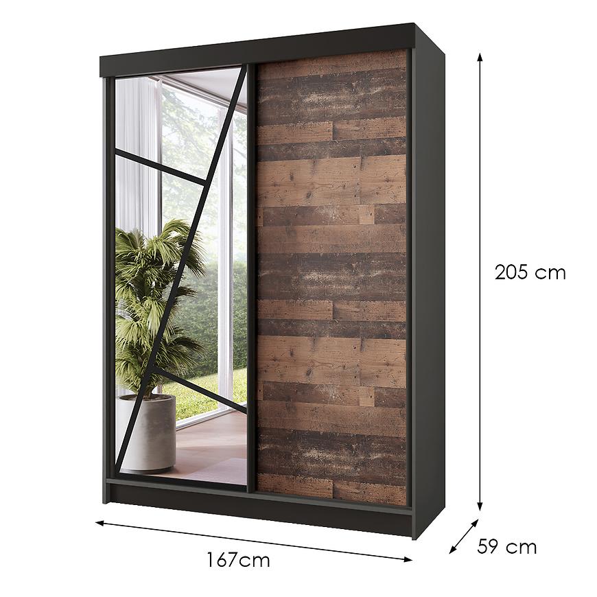 Szafa Vena 167 grafit antracyt/old style to wyjątkowy mebel, który łączy nowoczesny design z klasycznym akcentem, tworząc harmonijną całość, idealną do każdego współczesnego wnętrza. Oferując imponujące wymiary - 167 cm szerokości, 205 cm wysokości oraz 59 cm głębokości - szafa ta nie tylko zaspokaja potrzeby przechowywania, ale również dodaje elegancji i stylu każdemu pomieszczeniu.