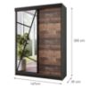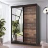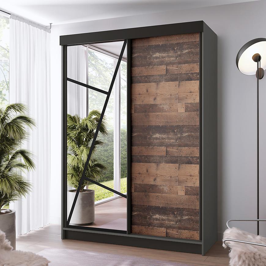 Wyjątkowy front w stylu old style nadaje szafie unikalny charakter. Ciemne drewnopodobne wybarwienie frontów w połączeniu z grafitowym korpusem tworzy efektowny kontrast, podkreślając nowoczesny styl mebla. Matowe wykończenie zarówno frontów, jak i korpusu dodaje szafie elegancji i subtelności, jednocześnie zapewniając łatwość w utrzymaniu czystości.