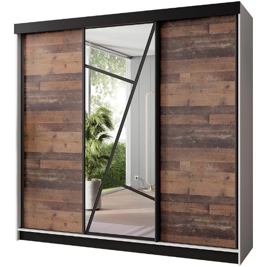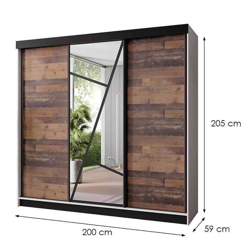 Kolorystyka frontów w stylu old style, w połączeniu z białym korpusem, tworzy ciekawy kontrast, który nadaje wnętrzu unikalnego charakteru. Matowe wykończenie zarówno frontów, jak i korpusu, podkreśla elegancję szafy, jednocześnie sprawiając, że jest ona łatwa do utrzymania w czystości. Wybarwienie w ciemnym drewnopodobnym stylu dodaje szafie ciepła i przytulności, wprowadzając do wnętrza naturalne akcenty.