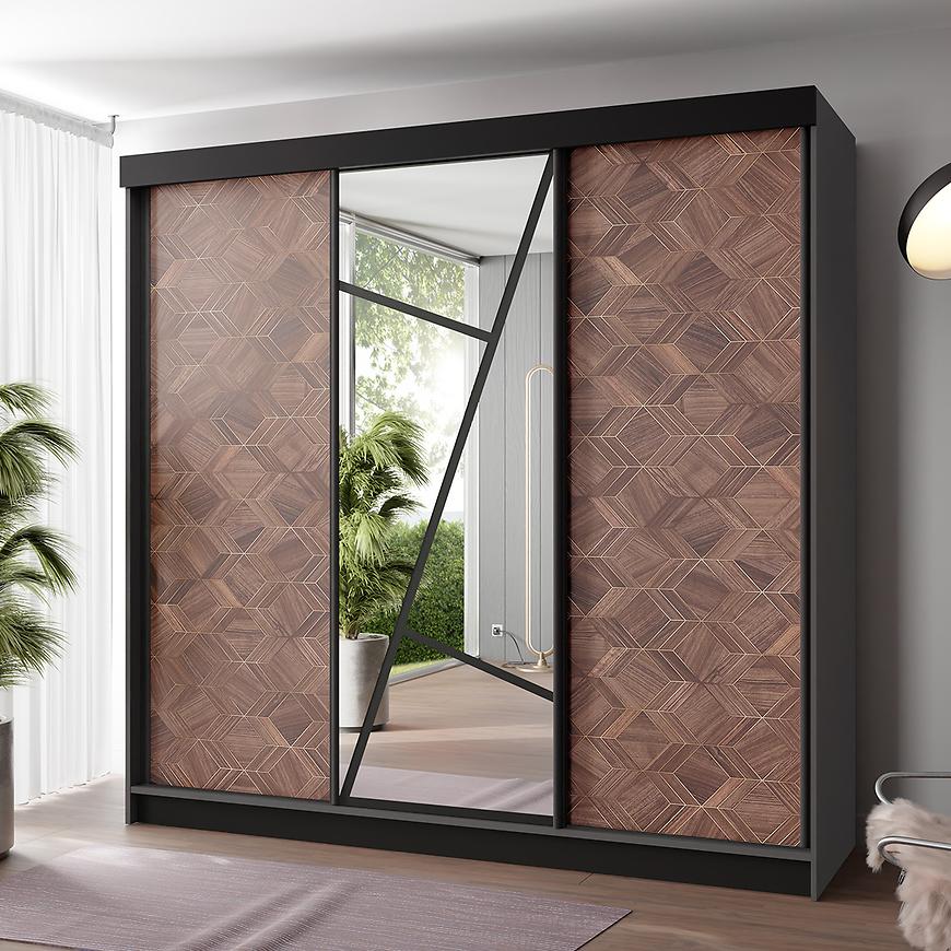 Fronty w stylu art deco, w połączeniu z ciemnym, drewnopodobnym wybarwieniem, wprowadzają do wnętrza nutę luksusu i klasy. Styl art deco charakteryzuje się bogatymi, geometrycznymi wzorami, które nadają szafie wyjątkowego charakteru. To połączenie nowoczesności z klasyczną elegancją sprawia, że szafa staje się centralnym punktem każdego pomieszczenia.