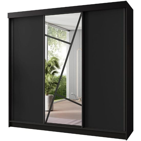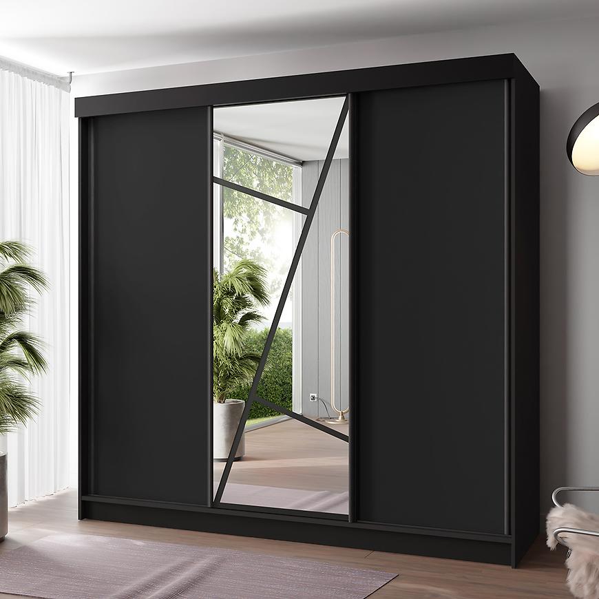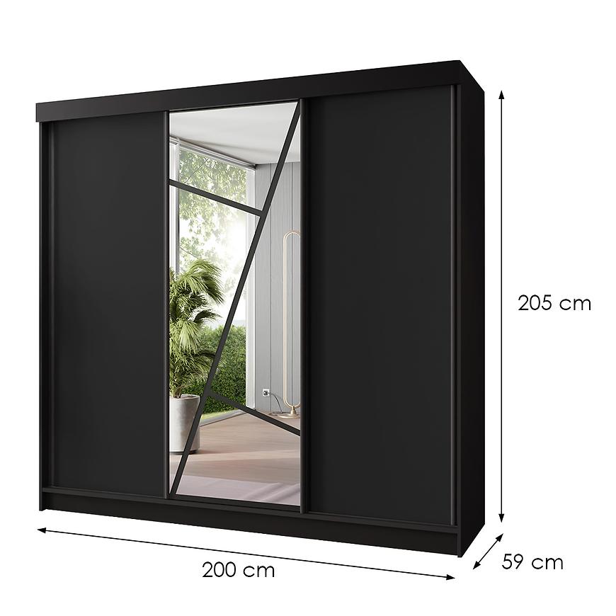 Szafa Vena 250 czarny/ czarny to doskonały wybór dla osób poszukujących eleganckiego i nowoczesnego mebla do swojej sypialni lub garderoby. Oferuje imponujące wymiary: 250 cm szerokości, 205 cm wysokości oraz 59 cm głębokości, co gwarantuje dużą przestrzeń do przechowywania odzieży, akcesoriów i innych przedmiotów.
