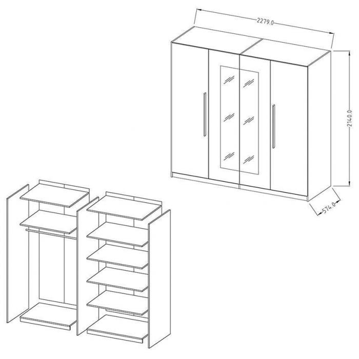 Szafa z drzwiami uchylnymi Vera to doskonały wybór do garderoby, przedpokoju, salonu czy sypialni. Kolor frontów i korpusu sprawiają, że wpasuje się w większość aranżacji. Jej wnętrze jest pojemne i pomieści zarówno ubrania jak i inne akcesoria. Szafa jest 4-drzwiowa. Dodatkowym atutem jest lustro, które optycznie powiększy pomieszczenie.