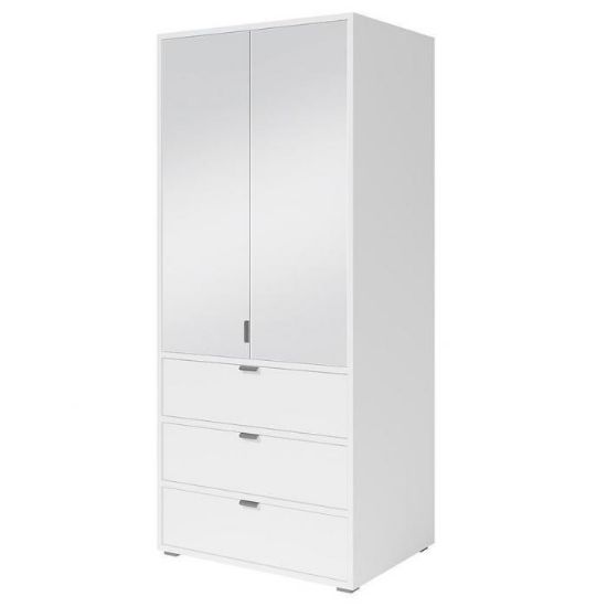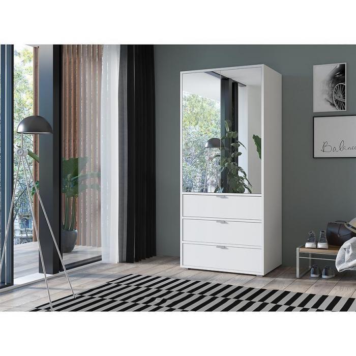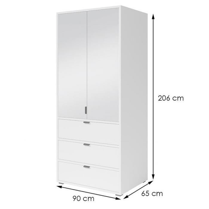 Szafa uchylna w kolorze białym to propozycja do pokoju dziennego, ale znajdzie swoje miejsce również w innym pomieszczeniu, jak na przykład - przedpokój czy garderobie. Materiał wykonania to płyta wiórowa laminowana. Szafa posiada lustro, które sprawi, że pomieszczenie stanie się optycznie większe. Nowoczesny styl mebli wpadnie do gustu każdemu, kto poszukuje eleganckiego, klasycznego, a zarazem nowoczesnego umeblowania. Idealnie wpasuje się w większość aranżacji. Przeznaczona do samodzielnego montażu.