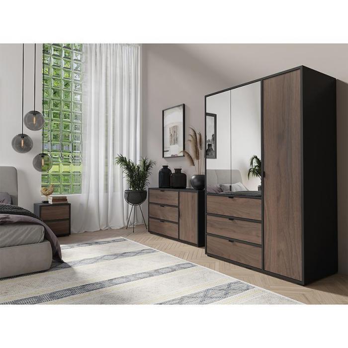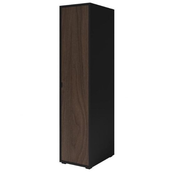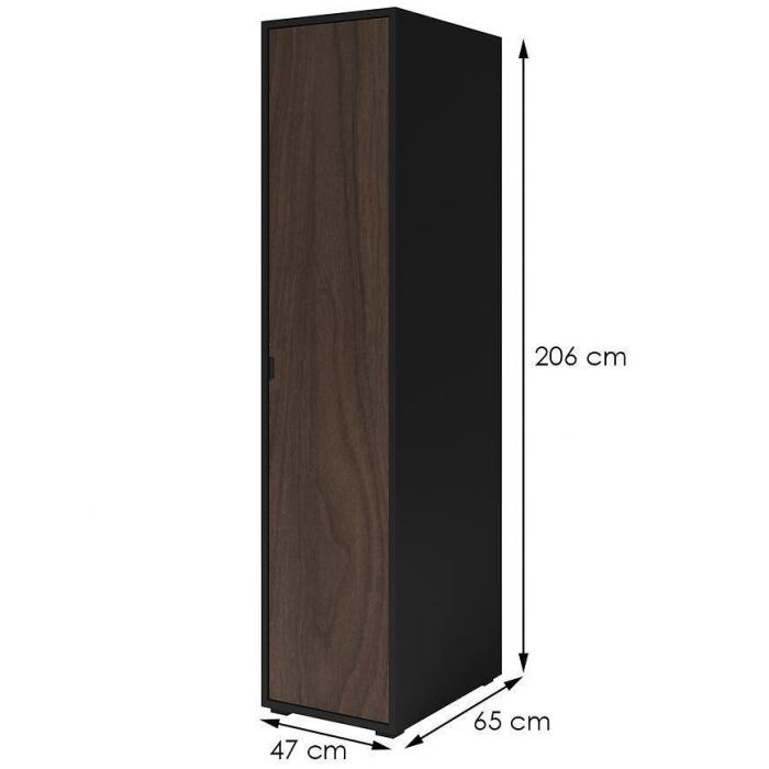Szafa uchylna w kolorze orzech/czarny to propozycja do pokoju dziennego, ale znajdzie swoje miejsce również w innym pomieszczeniu, jak na przykład - przedpokój czy garderobie. Materiał wykonania to płyta wiórowa laminowana. Nowoczesny styl mebli wpadnie do gustu każdemu, kto poszukuje eleganckiego, klasycznego, a zarazem nowoczesnego umeblowania. Idealnie wpasuje się w większość aranżacji. Przeznaczona do samodzielnego montażu.