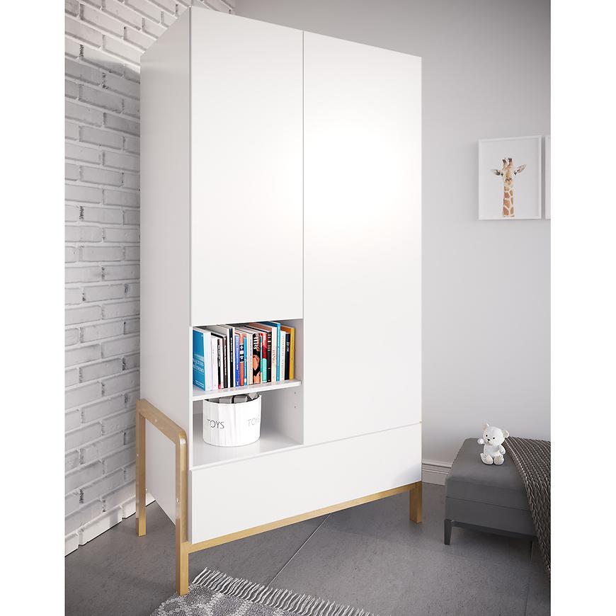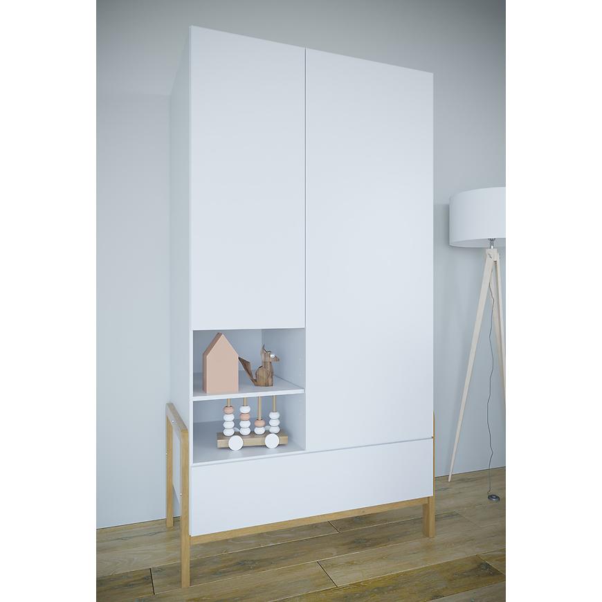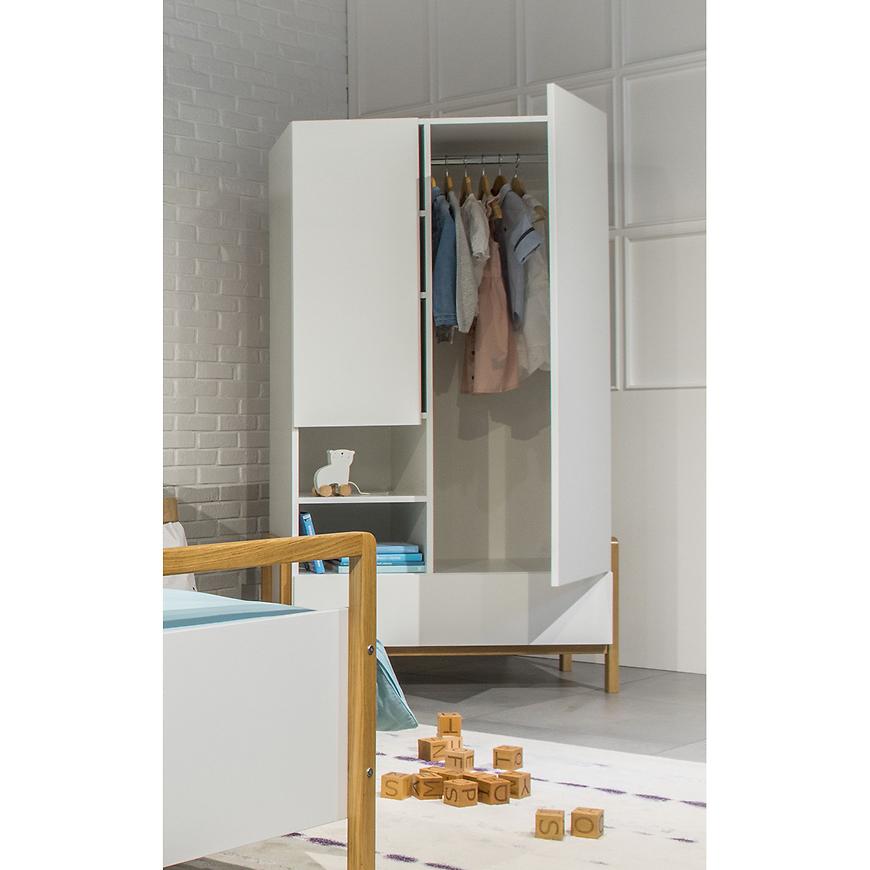 Klasyczne dwudrzwiowe drzwi sprawiają, że szafa Victor jest łatwa w obsłudze, a jednocześnie stanowi estetyczne rozwiązanie do przechowywania ubrań, obuwia oraz innych niezbędnych akcesoriów dziecięcych. Matowe wykończenie dodaje szafie subtelnego uroku, jednocześnie ułatwiając utrzymanie jej w czystości.