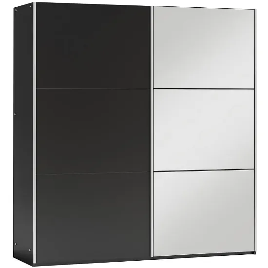Szafa Vigo 150 Czarny/Lustro to nowoczesny i funkcjonalny mebel, który łączy elegancję z praktycznym wykorzystaniem przestrzeni. Jej wymiary 151x215x65 cm zapewniają dużą powierzchnię do przechowywania odzieży i akcesoriów. Wykonana z płyty wiórowej laminowanej w czarnym wykończeniu matowym, szafa prezentuje się stylowo i nowocześnie. Posiada dwudrzwiowe drzwi przesuwne, które ułatwiają dostęp do wnętrza i oszczędzają miejsce w pomieszczeniu. Fronty z lustrem dodają elegancji, optycznie powiększają przestrzeń i umożliwiają szybkie przeglądanie stroju. Korpus matowy, solidna konstrukcja i waga 146,5 kg gwarantują trwałość i stabilność mebla. Szafa wymaga samodzielnego montażu, a jej nowoczesny design i funkcjonalność wprowadzają do wnętrza porządek, komfort i elegancję.