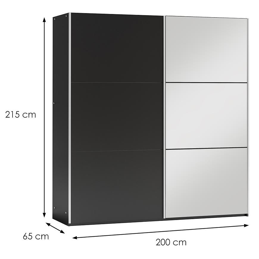 Szafa Vigo w kolorze czarnym to wyjątkowy element wyposażenia wnętrza, który łączy nowoczesność z funkcjonalnością. Dwudrzwiowa konstrukcja z drzwiami przesuwnymi zapewnia wygodny dostęp do wnętrza szafy, jednocześnie oszczędzając przestrzeń, co jest kluczowe w mniejszych pomieszczeniach.