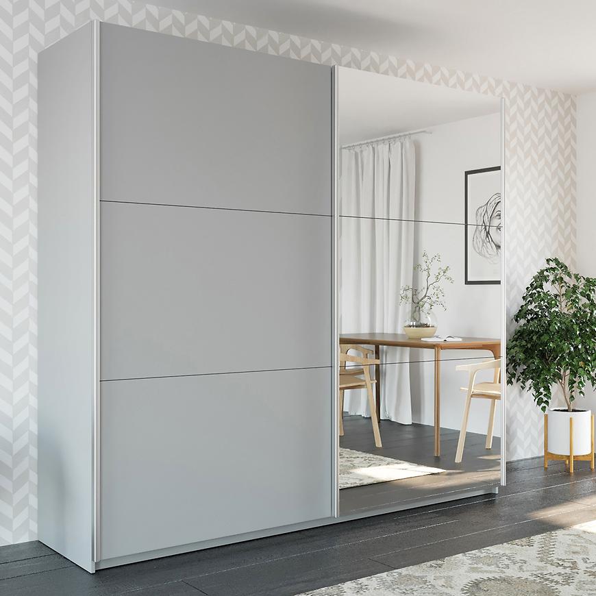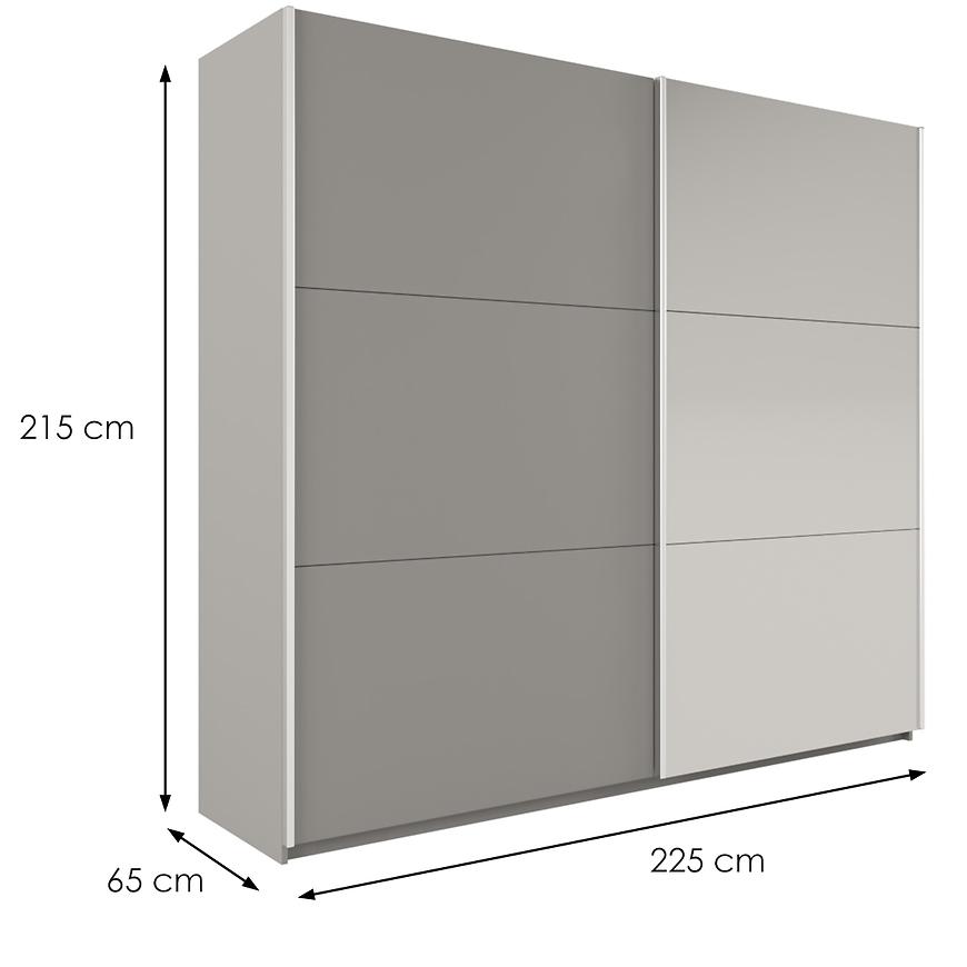 Szafa Vigo w kolorze platinum to wyjątkowy element wyposażenia wnętrza, który łączy nowoczesność z funkcjonalnością. Dwudrzwiowa konstrukcja z drzwiami przesuwnymi zapewnia wygodny dostęp do wnętrza szafy, jednocześnie oszczędzając przestrzeń, co jest kluczowe w mniejszych pomieszczeniach.