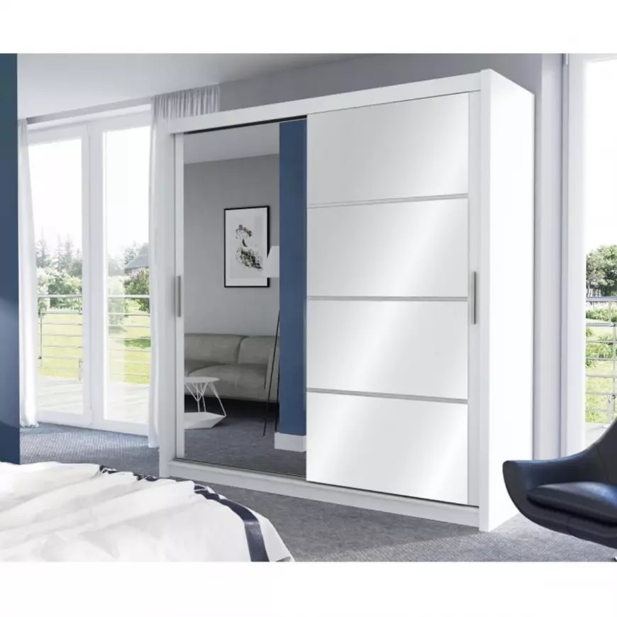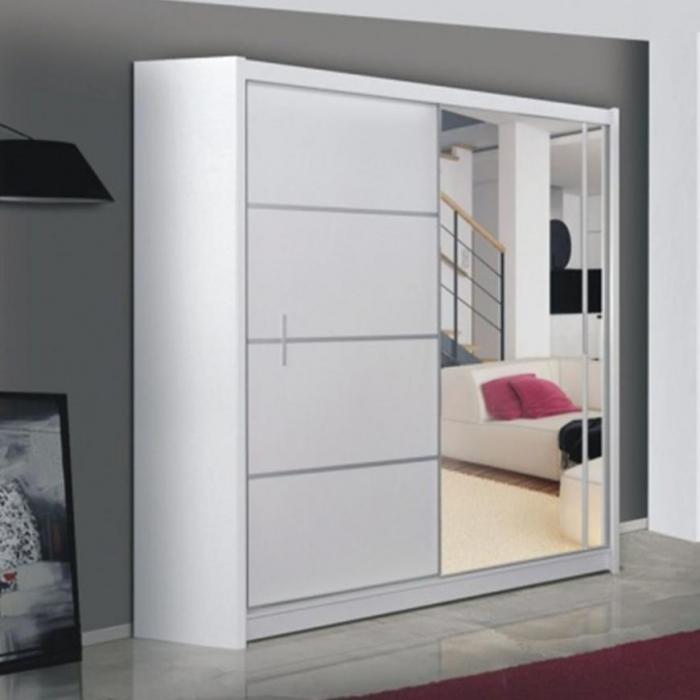 Szafa z drzwiami przesuwnymi Vista to doskonały wybór do garderoby, przedpokoju, salonu czy sypialni. Kolor frontów i korpusu sprawiają, że wpasuje się w większość aranżacji. Jej wnętrze jest pojemne i pomieści zarówno ubrania jak i inne akcesoria. Szafa jest dwudrzwiowa i posiada lustro, które optycznie powiększy pomieszczenie.
