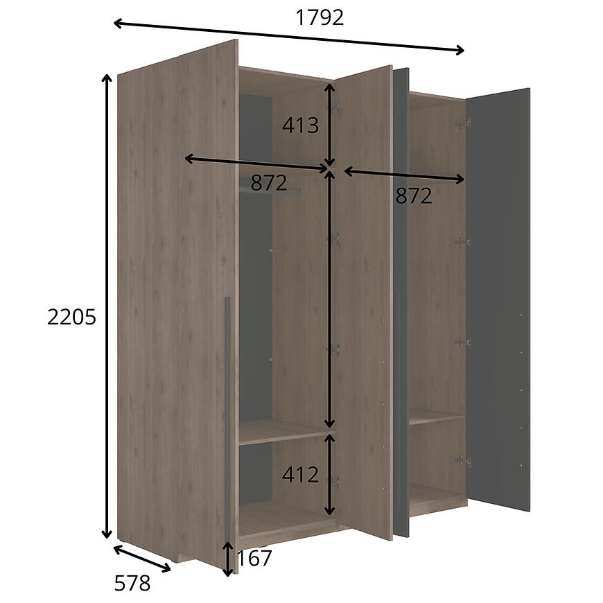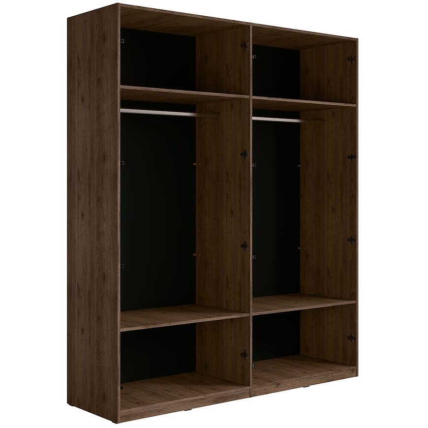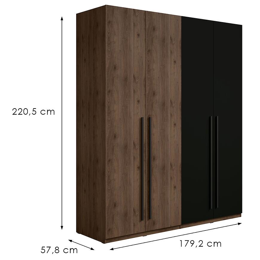 Szafa Wenecja 20 orzech elegant/czarny onyx to połączenie estetyki, pojemności i trwałości. Duża przestrzeń użytkowa oraz nowoczesny design sprawiają, że mebel doskonale sprawdzi się w codziennym użytkowaniu, oferując wygodę i porządek.