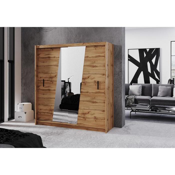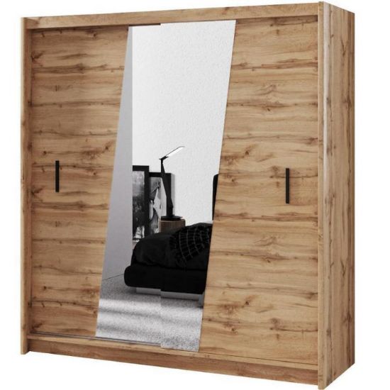 Szafa z drzwiami przesuwnymi Wenecja to doskonały wybór do garderoby, przedpokoju czy sypialni. Fronty i korpus w kolorze dąb wotan sprawiają, że wpasuje się w większość aranżacji. Jej wnętrze jest pojemne i pomieści zarówno ubrania jak i inne akcesoria. Szafa jest dwudrzwiowa.