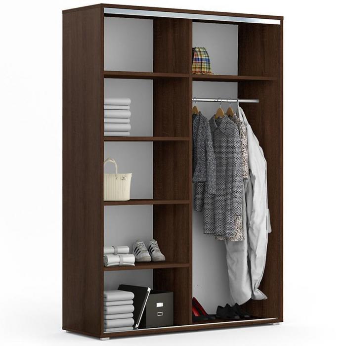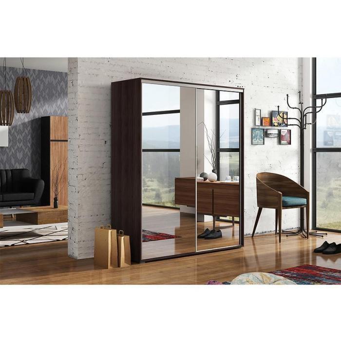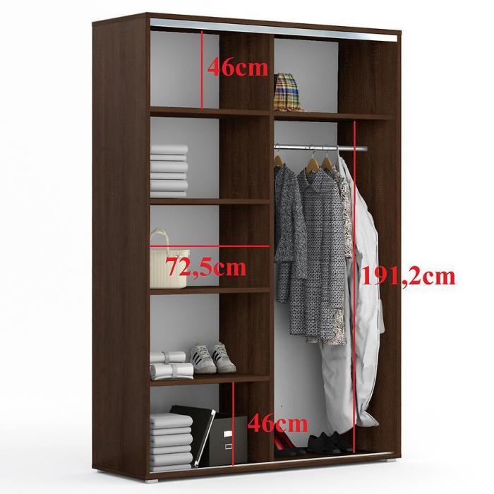 Szafa z drzwiami przesuwanymi Wiktoria to doskonały wybór do garderoby, przedpokoju czy sypialni. Fronty i korpus w kolorze czekoladowym sprawiają, że wpasuje się w większość aranżacji. Jej wnętrze jest pojemne i pomieści zarówno ubrania jak i inne akcesoria. Szafa jest dwudrzwiowa i posiada lustro, które optycznie powiększy pomieszczenie.