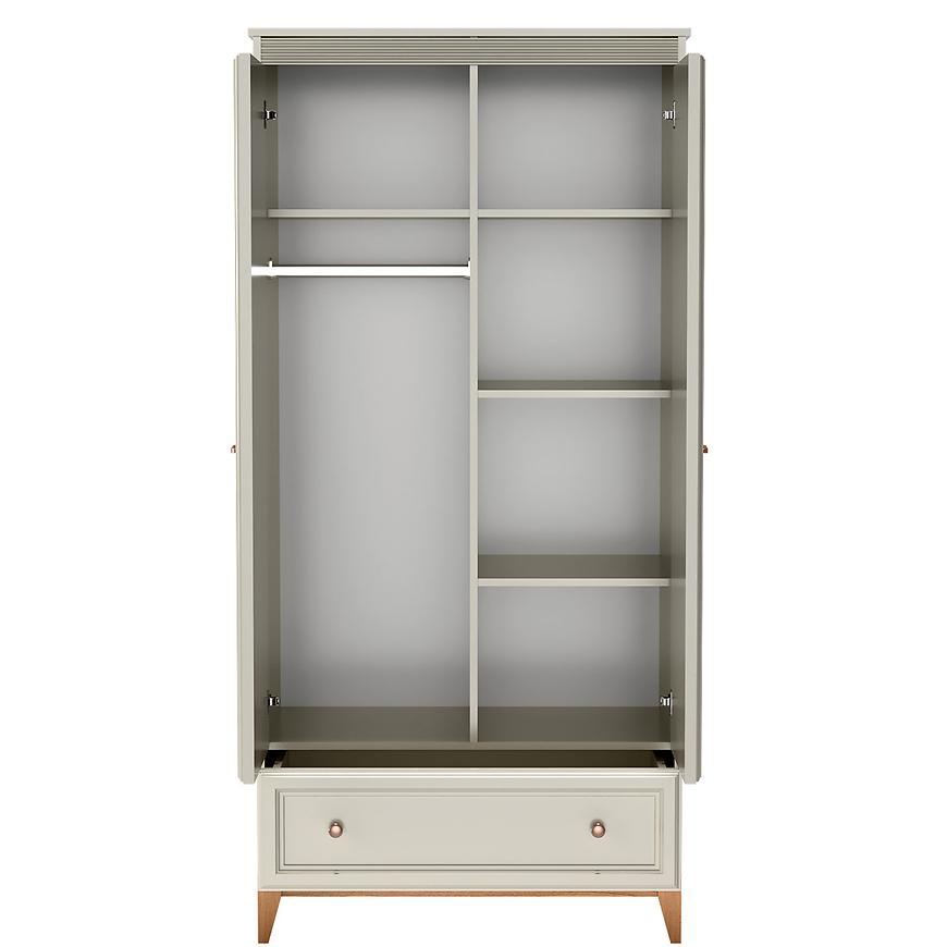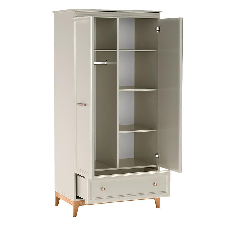 Szafa Windsor z kolekcji Windsor to idealne rozwiązanie dla osób ceniących sobie nowoczesny styl i funkcjonalność w jednym. Dwudrzwiowa konstrukcja w kolorze Kashmir/Dąb Naturalny z matowym wykończeniem doskonale wpasowuje się w minimalistyczne oraz eleganckie wnętrza sypialni, przedpokoju czy garderoby.