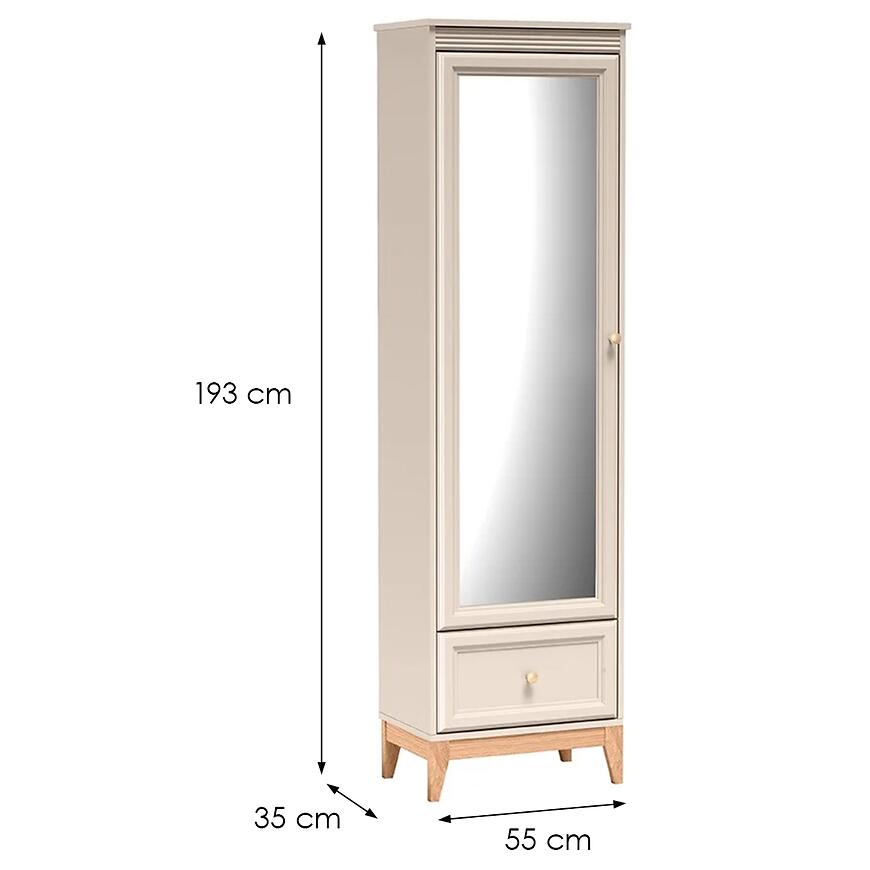 Szafa Windsor W-18 Kashmir/Dąb Naturalny łączy nowoczesny styl skandynawski z funkcjonalnością. Jednodrzwiowa konstrukcja z lustrem, przestronna i dobrze przemyślana wnętrze oraz solidne materiały gwarantują trwałość i wygodę użytkowania, a matowe wykończenie w eleganckim kolorze wprowadza do wnętrza subtelny i estetyczny akcent.