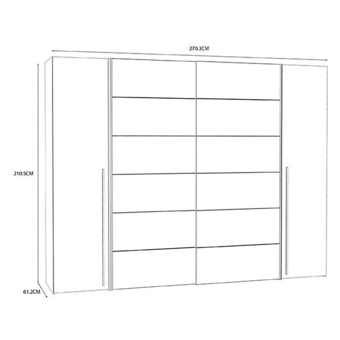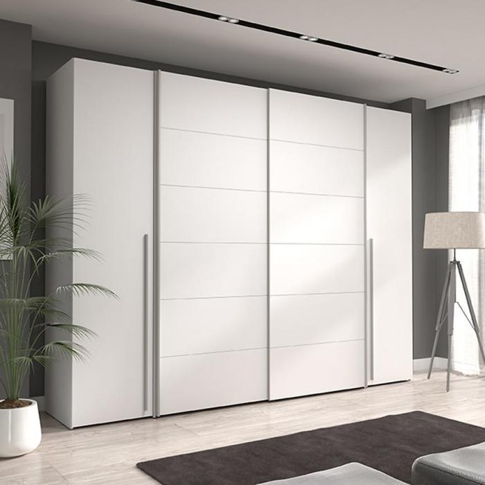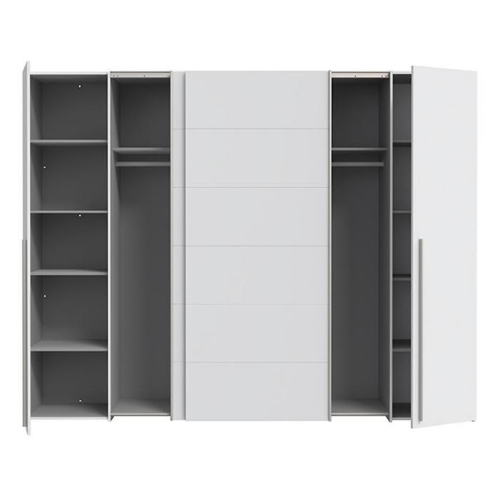 Szafa z drzwiami przesuwnymi oraz uchylnymi Winterbelle to doskonały wybór do garderoby, przedpokoju, salonu czy sypialni. Kolor frontów i korpusu sprawiają, że wpasuje się w większość aranżacji. Jej wnętrze jest pojemne i pomieści zarówno ubrania jak i inne akcesoria. Szafa jest 4-drzwiowa.