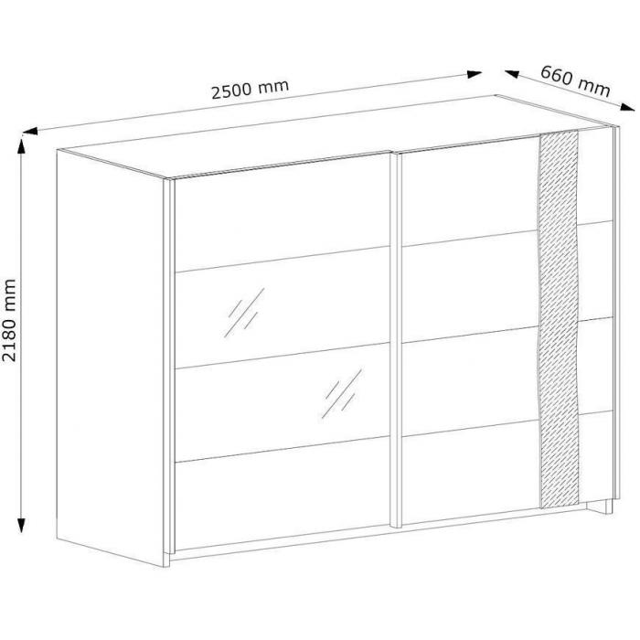 Materiał wykonania mebla to płyta laminowana. Mebel sprawdzi się w pomieszczeniach, gdzie dotychczas ciężko było utrzymać ład. Posiada półki oraz drążek na urania, a także lustro na przesuwnych drzwiach. Szafa wpasuje się w większość aranżacji, nadając pomieszczeniu nowoczesny i elegancki design.
