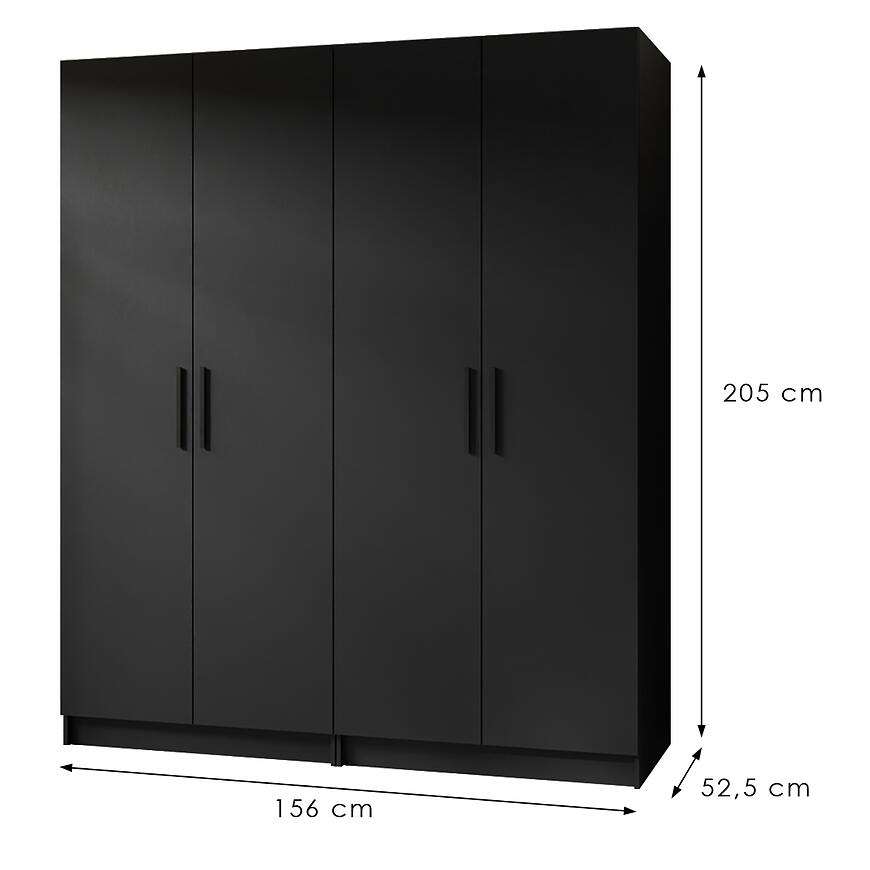 Szafa X2 Gold 2d Czarny/Czarny to nowoczesny i przestronny mebel, który łączy funkcjonalność z eleganckim wykończeniem w odcieniach czerni. Posiada dwudrzwiową konstrukcję z klasycznymi drzwiami, oferując dużą przestrzeń do przechowywania ubrań i akcesoriów. Wykonana z laminowanej płyty wiórowej, z frontami i korpusem w czarnym macie, łączy trwałość z estetyką. Dzięki wymiarom 156 × 205 × 52,5 cm jest solidna, praktyczna i doskonale wpisuje się w nowoczesne aranżacje wnętrz.