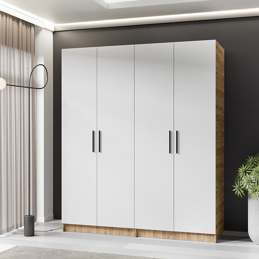 Szafa X2 Gold 2d Dąb Craft Złoty/Biały to nowoczesny, przestronny mebel, który łączy funkcjonalność z eleganckim wykończeniem drewna. Posiada dwudrzwiową konstrukcję z klasycznymi drzwiami, oferując dużą przestrzeń do przechowywania ubrań i akcesoriów. Wykonana z laminowanej płyty wiórowej, z frontami w białym macie i korpusem w odcieniu dąb craft złoty, gwarantuje trwałość i estetyczny wygląd. Dzięki wymiarom 156 × 205 × 52,5 cm jest solidna i praktyczna w nowoczesnych wnętrzach.
