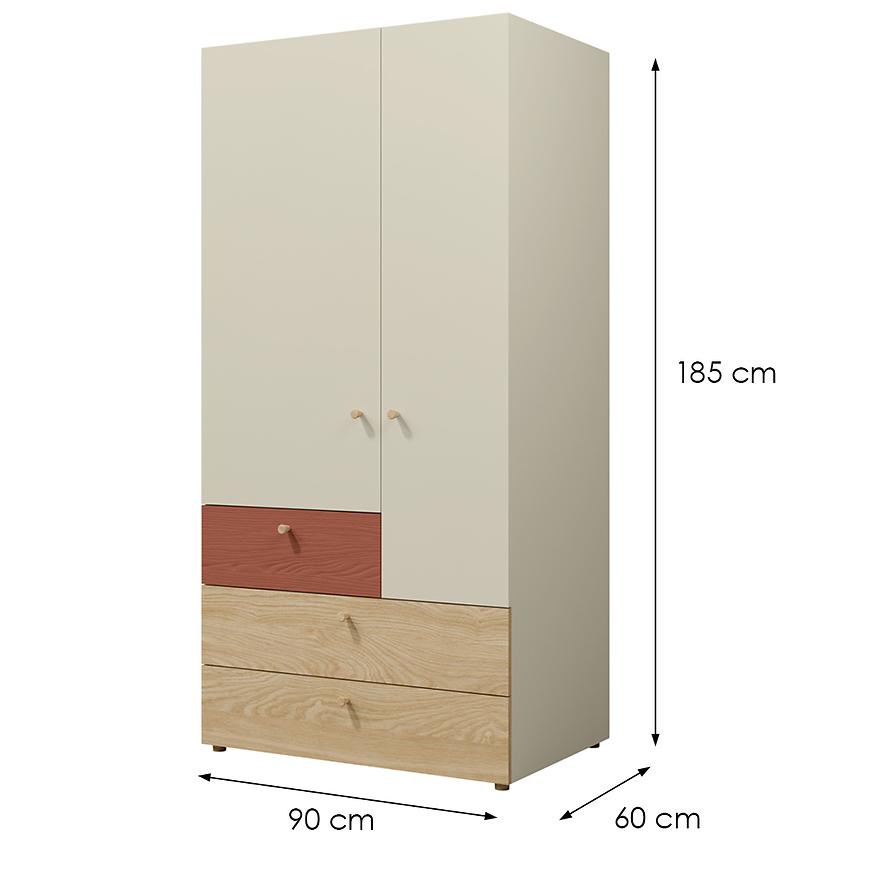 - Szafa Yuki 2 Koral/Szary Beż/Dąb Olejowany