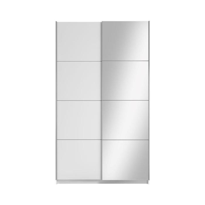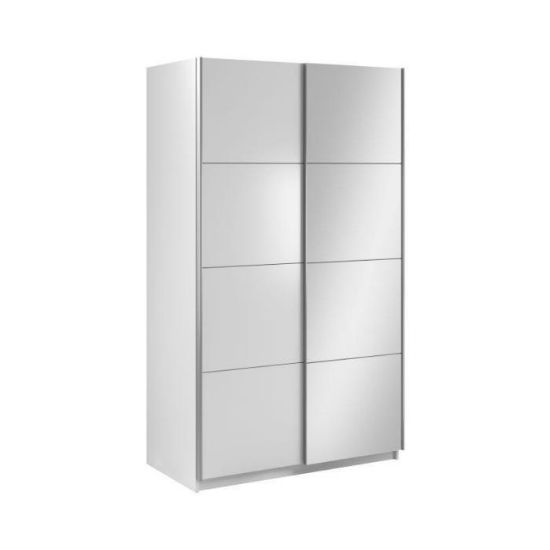 Szafa dwudrzwiowa Asti 120 z lustrem to doskonała propozycja do sypialni, a także do przedpokoju. Dostępna w kolorze białym, korpus i fronty w matowym wykończeniu. Szafa posiada drzwi przesuwne oraz uchwyty relingowe w kolorze srebrnym.