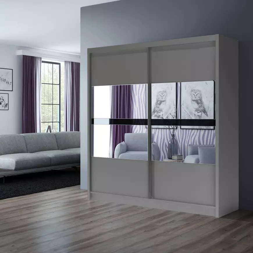 Jednym z kluczowych elementów szafy Batumi 203 są przesuwne drzwi. To rozwiązanie jest nie tylko estetyczne, ale także praktyczne, ponieważ nie zajmuje dodatkowej przestrzeni podczas otwierania szafy. Dzięki temu szafa jest idealna do mniejszych pomieszczeń, gdzie liczy się każdy centymetr wolnej przestrzeni. Na drzwiach umieszczono duże lustro, które nie tylko pełni funkcję użytkową, umożliwiając szybkie sprawdzenie wyglądu przed wyjściem, ale również optycznie powiększa przestrzeń, co jest szczególnie ważne w małych pomieszczeniach.