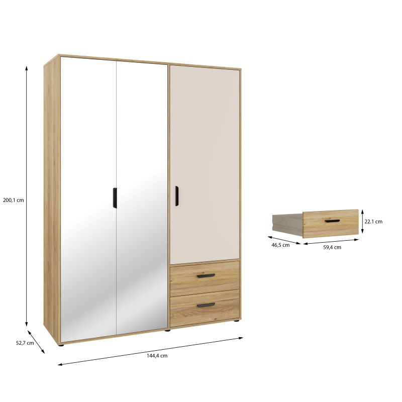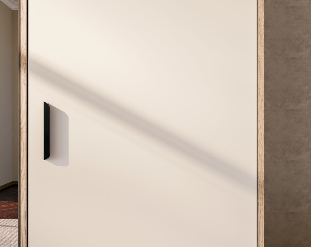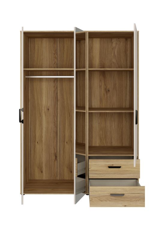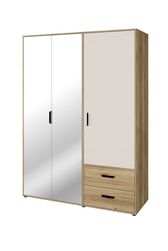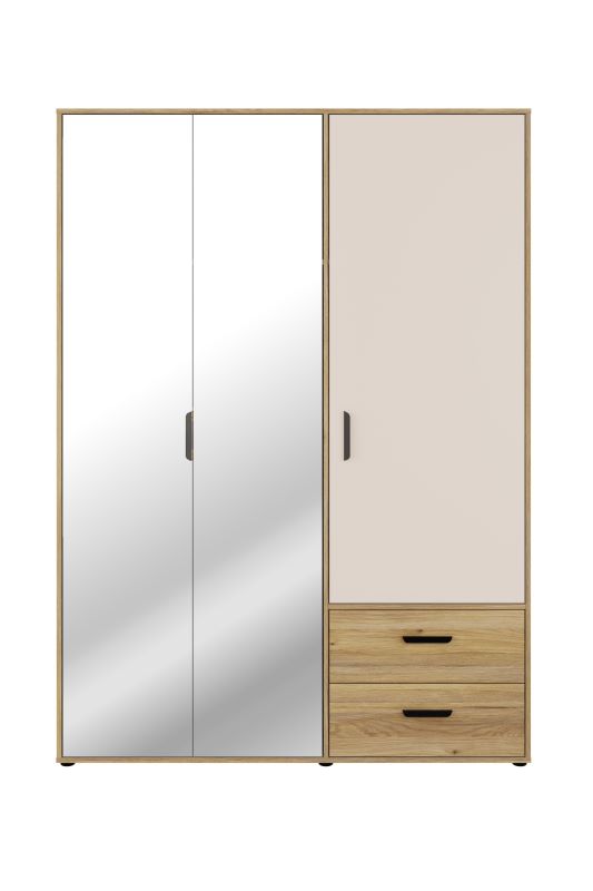 Kolorystyka łącząca piaskowy front z akcentami dębu mauvella tworzy przyjemny efekt wizualny, który harmonijnie komponuje się z jasnymi i ciemnymi aranżacjami wnętrz. Szafa Calvado MOKS837 może stać się centralnym punktem wystroju lub subtelnie uzupełniać inne elementy wyposażenia.