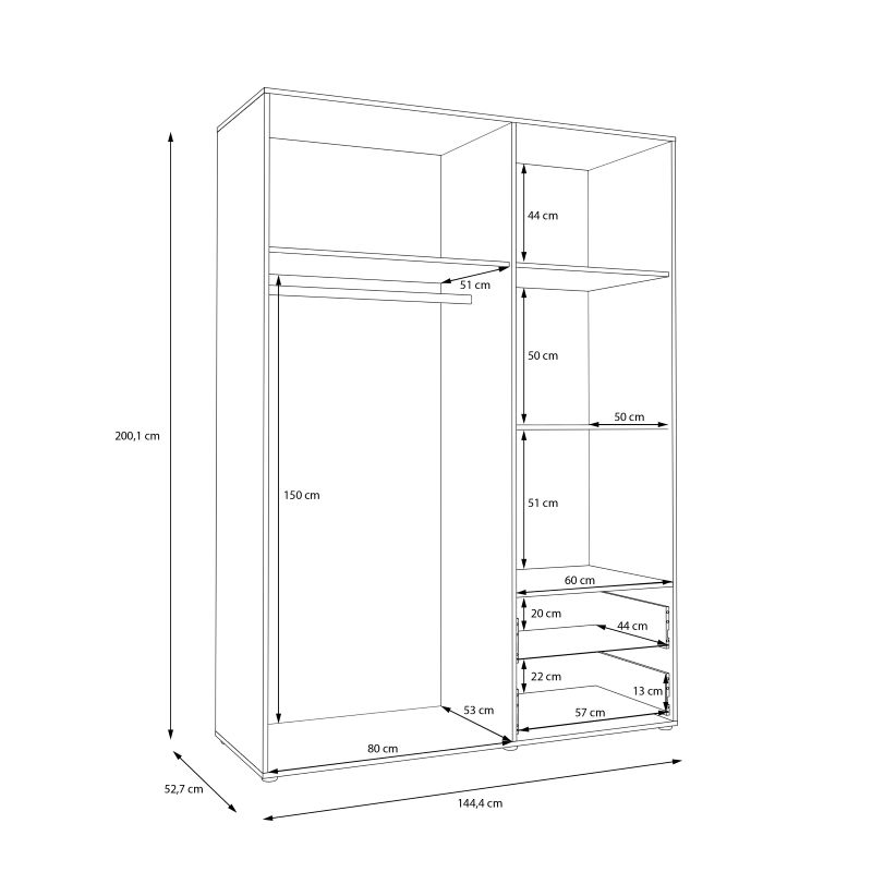 Szafa Calvado MOKS837 została zaprojektowana z myślą o maksymalnym wykorzystaniu przestrzeni. Jej wnętrze podzielone jest w taki sposób, aby przechowywanie odzieży było wygodne i uporządkowane.