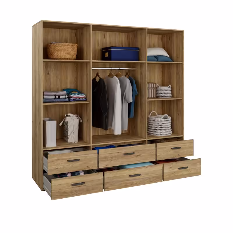 8 półek – przestrzeń na poskładane ubrania, akcesoria czy tekstylia domowe.