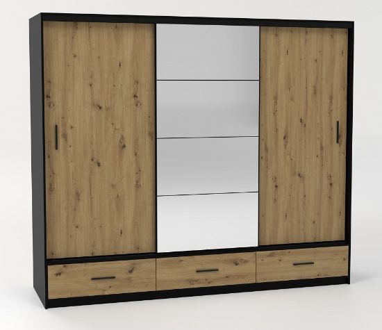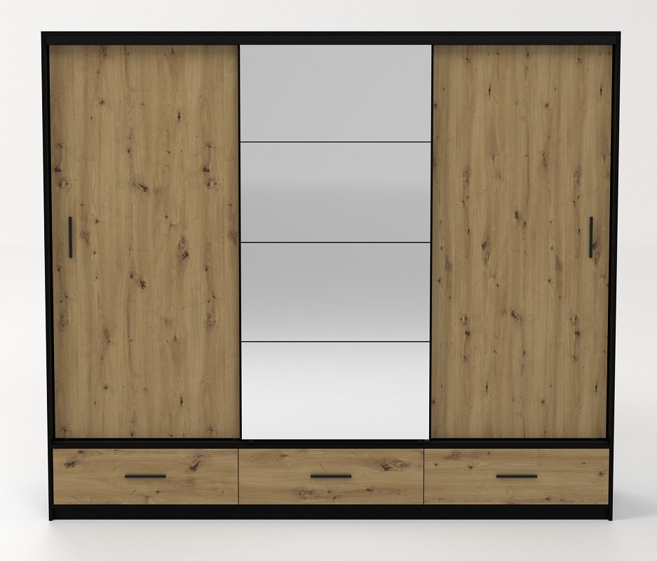 Podsumowując, szafa z lustrem Platon 250 to nie tylko mebel do przechowywania, ale również stylowy element, który doskonale komponuje się z nowoczesnym wystrojem wnętrza. Solidne wykonanie, nowoczesny design i funkcjonalność sprawiają, że jest to doskonały wybór dla osób poszukujących nietuzinkowych rozwiązań do swojej sypialni czy garderoby.