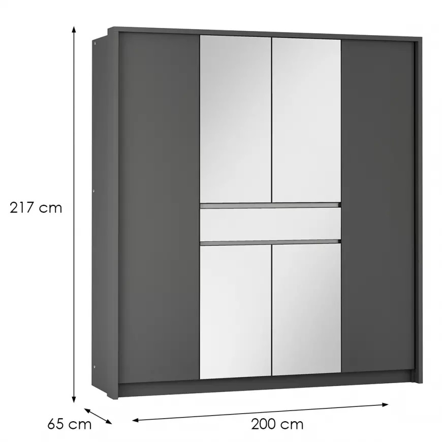 Podsumowując, szafa z lustrem Split 200 to wyjątkowy wybór dla osób, które cenią sobie połączenie estetyki, nowoczesnego designu i funkcjonalności. Jej elegancki, grafitowy kolor oraz matowe wykończenie dodadzą stylu każdemu wnętrzu, a przemyślane rozwiązania w zakresie przechowywania zapewnią wygodę i porządek. Niezależnie od tego, czy potrzebujesz szafy do sypialni, czy przedpokoju, szafa Split 200 spełni wszystkie Twoje oczekiwania, oferując nie tylko piękny wygląd, ale także praktyczność i komfort użytkowania.