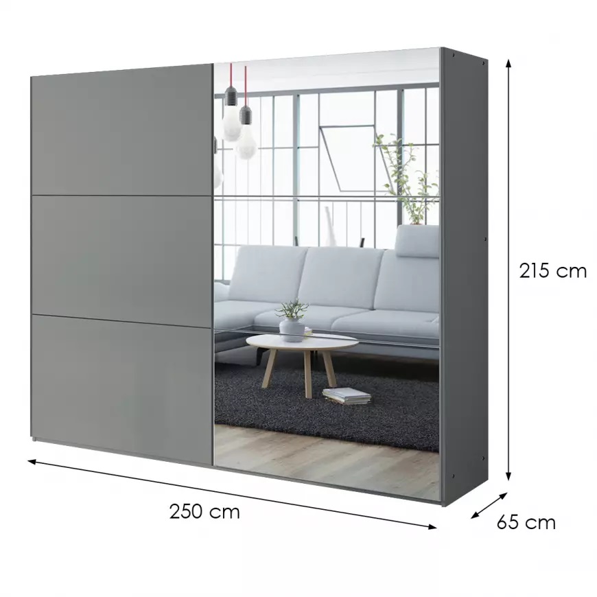 Szafa dwudrzwiowa z lustrem Vigo 250 to wyraz nowoczesnej elegancji i praktyczności, doskonały wybór dla osób ceniących sobie funkcjonalność oraz estetykę w jednym. Ta imponująca szafa, o szerokości 250 cm i głębokości 65 cm, zapewnia ogrom przestrzeni do przechowywania, spełniając oczekiwania nawet najbardziej wymagających użytkowników.