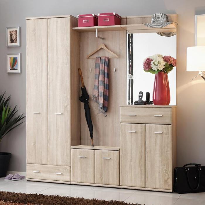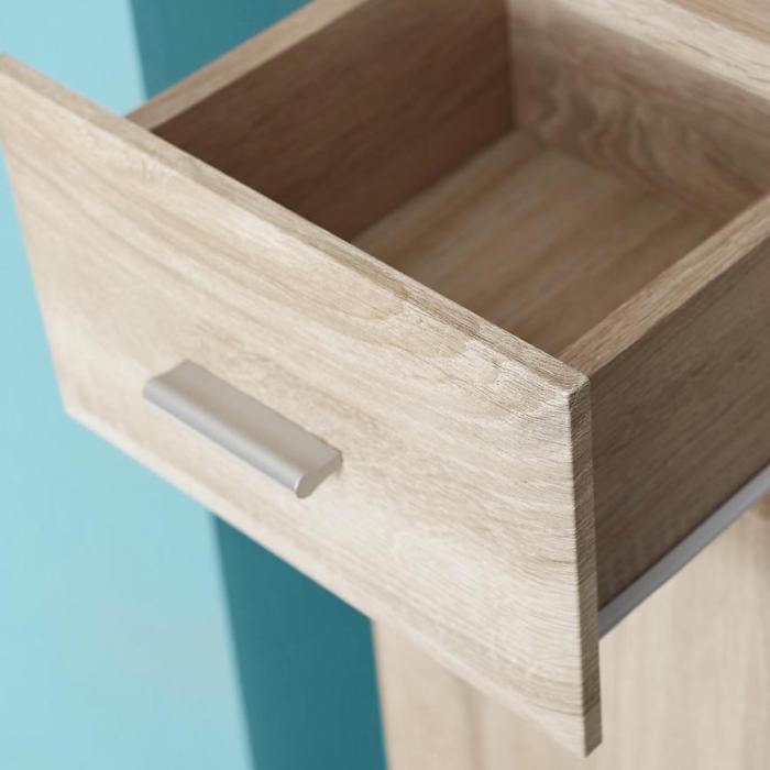 Kolekcja Armario to przede wszystkim klasyka i nowoczesność. Meble świetnie wpasują się w przedpokój, ale będą doskonale pasować również do garderoby czy innego pomieszczenia. Kolor mebla dąb sonoma sprawia, że wpasuje się w większość aranżacji. Fronty oraz korpus wykonane są z płyty laminowanej.