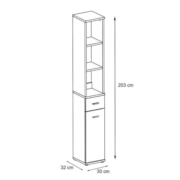 Wygląd szafy Armario z pewnością wpasuje się w aranżację niejednego domu. Szafa z drzwiami uchylnymi, trzema otwartymi półkami i szufladą, doskonale sprawdzi się w przedpokoju, salonie czy też garderobie. Pomieści zarówno ubrania jak i inne akcesoria.