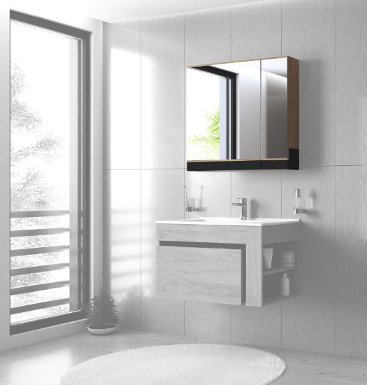 Szafka lustrzana Balto oferuje szerokość 80 cm, wysokość 72 cm oraz głębokość 15 cm, dzięki czemu zapewnia praktyczną przestrzeń do przechowywania bez zajmowania dużej powierzchni ściany. Smukła konstrukcja sprawia, że mebel doskonale sprawdzi się zarówno w większych, jak i mniejszych łazienkach.