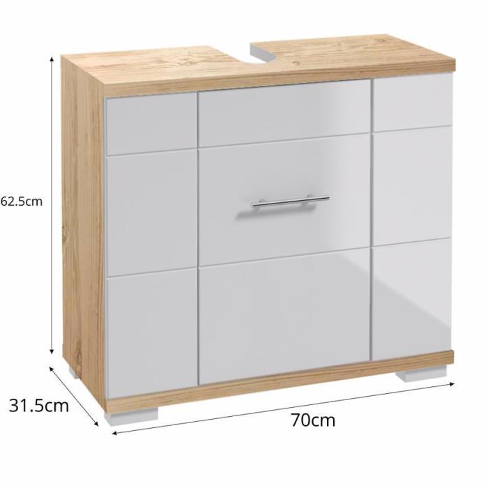 Szafka Bari to elegancki mebel, który świetnie wpisze się w nowoczesne wnętrza. Meble wykonane są z wysokiej jakości materiałów - płyty MDF /płyty wiórowej. Fronty są odporne i wytrzymałe- pokryte lakierem.